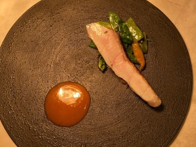 甘鯛の鱗焼き 八女抹茶と麹のソース